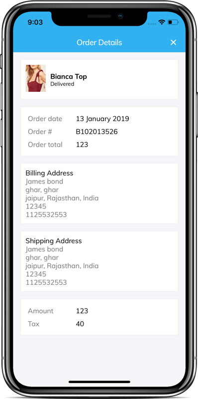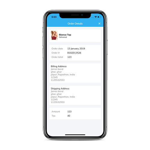 - Order history page with detailed order history