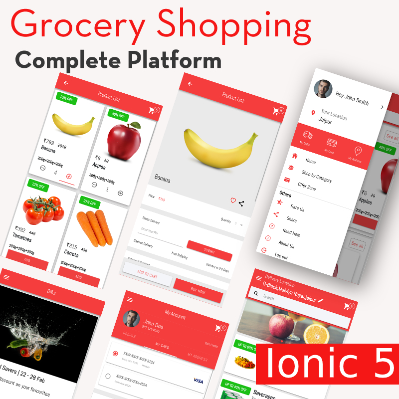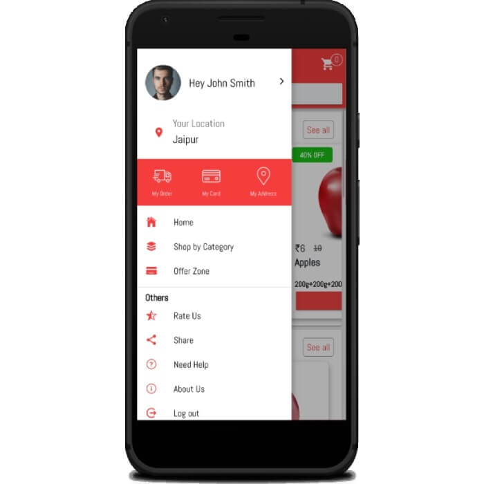 – Home page with tab configuration for multiple shopping categories. Swipe-enabled section ensures better UX