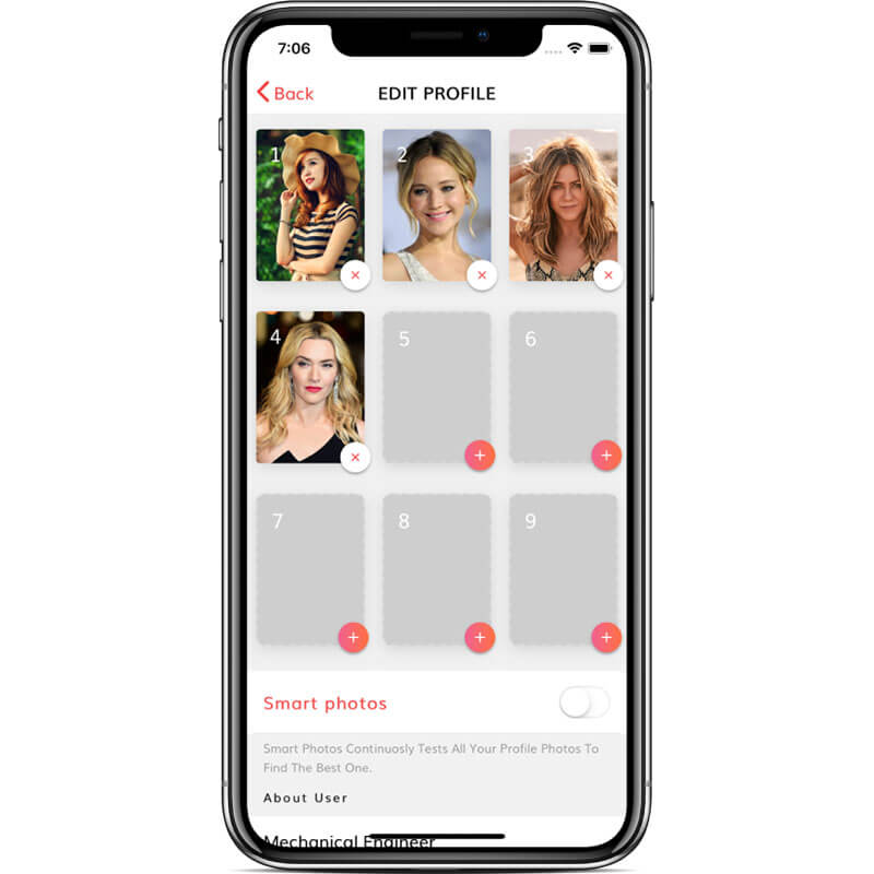 - Tinder Style Profile Page