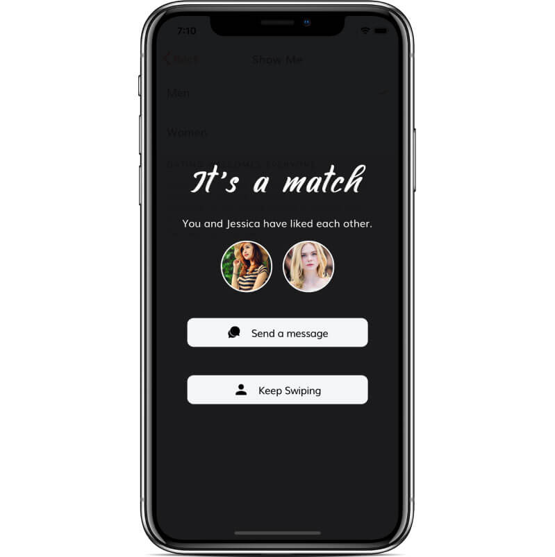 - Tinder Style Match Screen