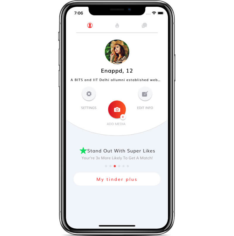 - Tinder Plus page for premium offering